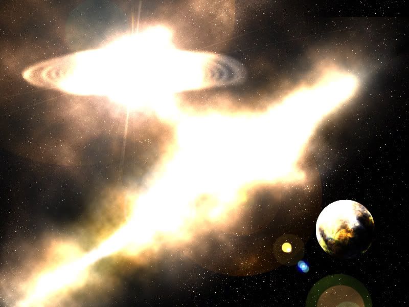 Well, For a while now i've been trying to get the hang of creating space scenes, using tutorials and stuff, i've made a few and I'd love to have some comments if anyone is willing. Super Nova In this one I was looking to mess around with the effects and try to get a nice 'story' of sorts. Second Space Scene Second Space Scene With Extras Well, the edittions came from a friends idea of "They should be having a battle or something" and so I took up his suggestion and tahts where the additions came in Third Space Scene Those Rings were the biggest pain in the backside I've EVER done It's Out there Something simple, yet complex at the same time. World Goes Bang Don't ask ^^ |